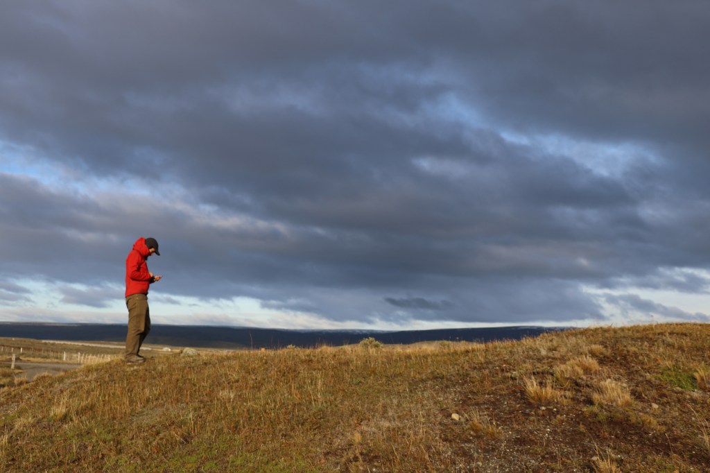This mapping work has brought us to the Tierra del Fuego steppe on a cool April afternoon. The winds whip through sturdy, yellow grasses that populate the hills here, and herds of guanacos roam wild under overcast skies. Aside from the occasional vehicle stirring up dust along these dirt highways, we haven’t seen another soul for hours.